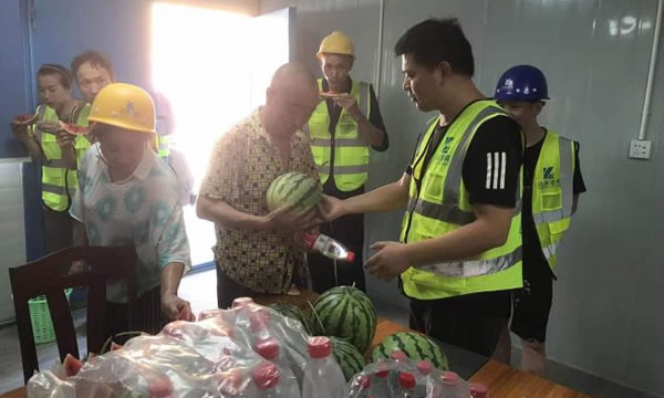 慰问过程中,公司领导了解了在建项目进程,询问了防暑降温措施开展情况和施工人员在高温天气下的工作生活状况,并代表公司对施工人员无惧“烤”验、坚守岗位的敬业精神表示衷心的感谢。他叮嘱施工单位在保证工程质量,强力推进工程进度的同时,一定要关心施工人员,合理安排好作息时间,保障施工安全,通过科学有效的措施抢抓工期。