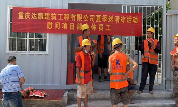 持续的高温天气给工地一线的施工人员带来严峻“烤”验。为切实做好工地高温施工安全工作,保障工地一线施工人员的身心健康,确保施工进度有序进行,7月14日,公司领导在项目负责人、相关工作人陪同下,深入龙力、戒毒所、江津德感、马鞍山等项目开展慰问,为高温天气下正在施工作业的工作人员送清凉。
